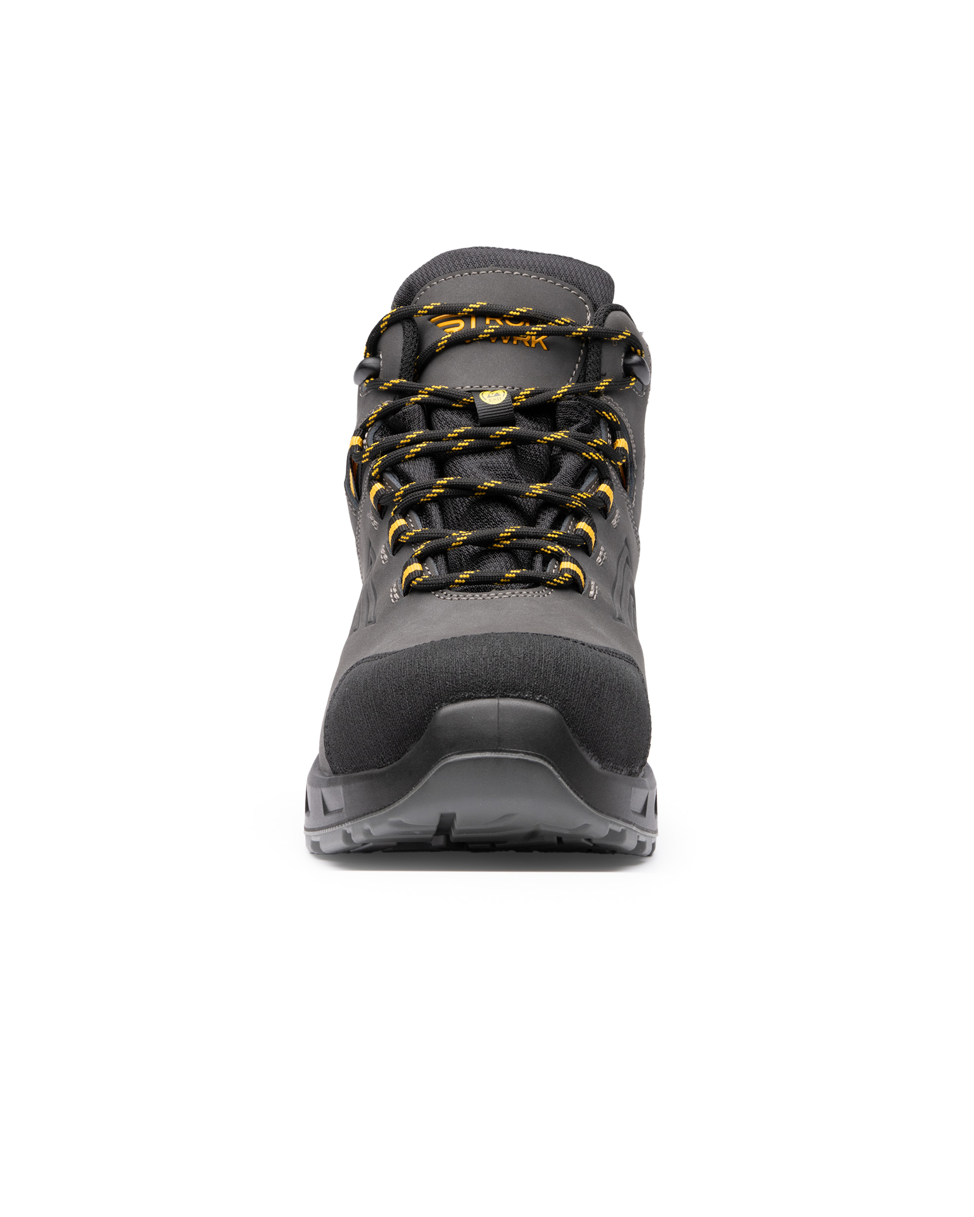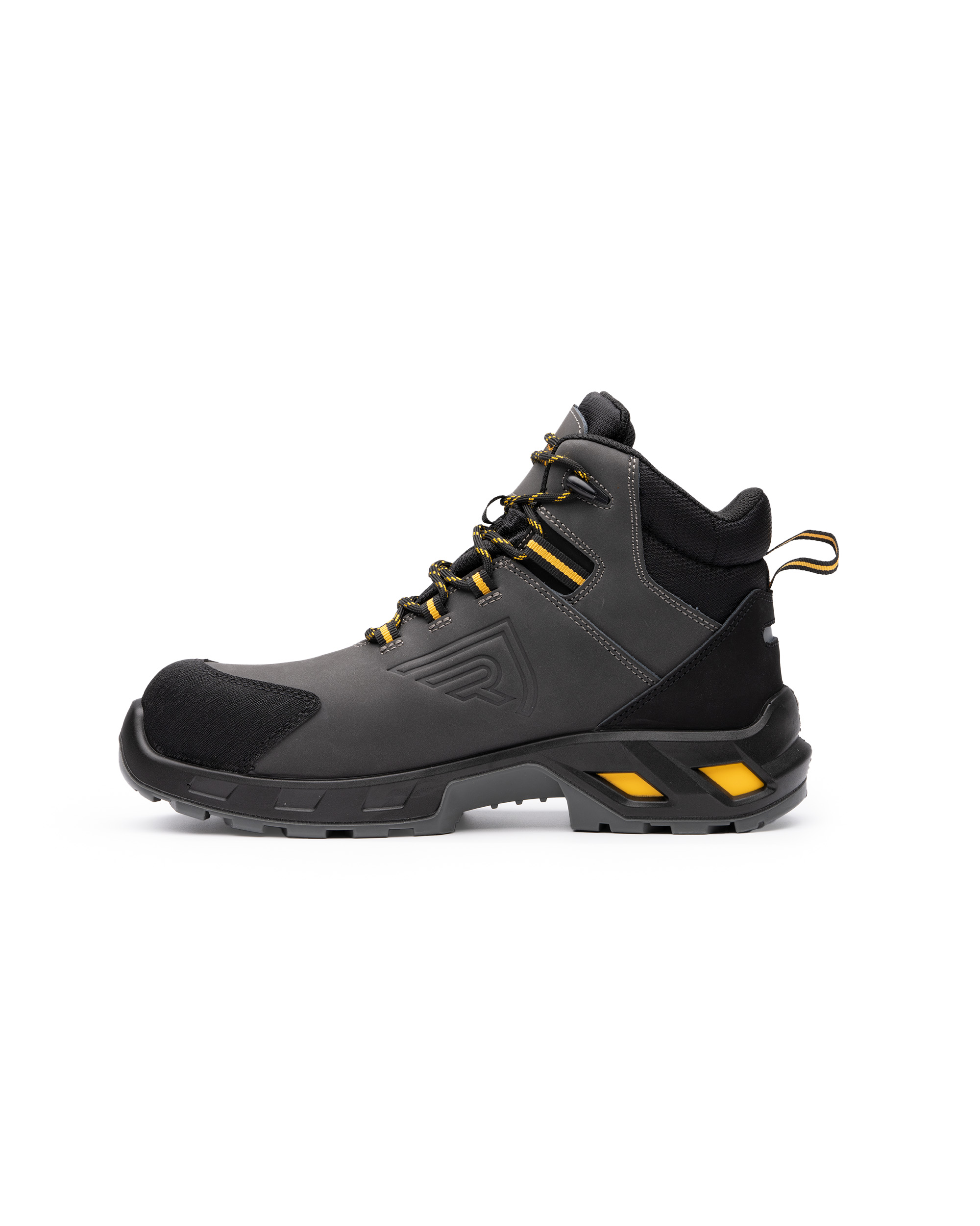 Bota laboral con tejido de piel con recubrimiento de fibra, es impermeable y ofrece resistencia, seguridad y comodidad para entornos de trabajo exigentes.