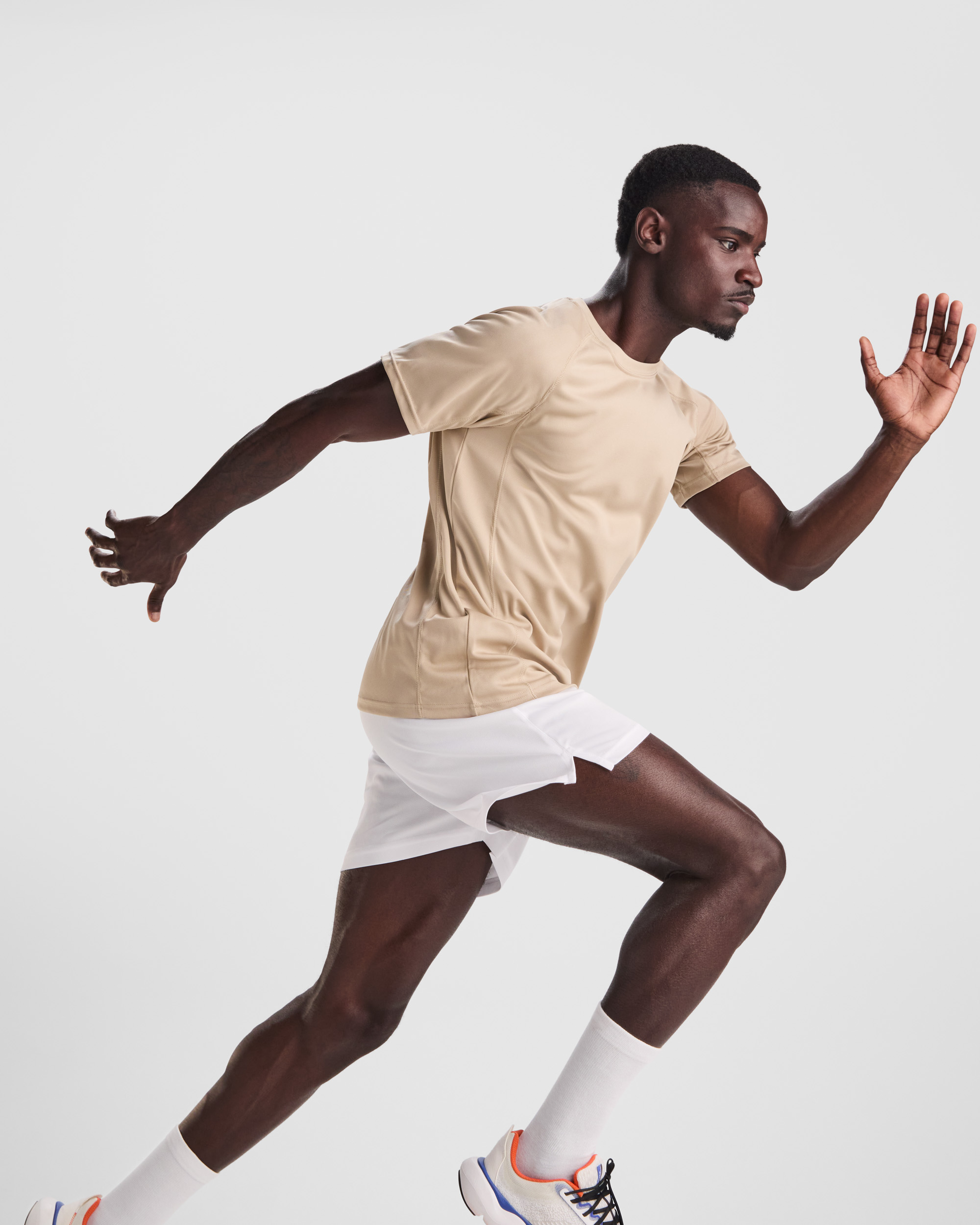 Camiseta técnica manga ranglán transpirable. Roly Control Dry. Paneles laterales. Cuello redondo y cubrecosturas del mismo tejido al tono (Certificado UV).