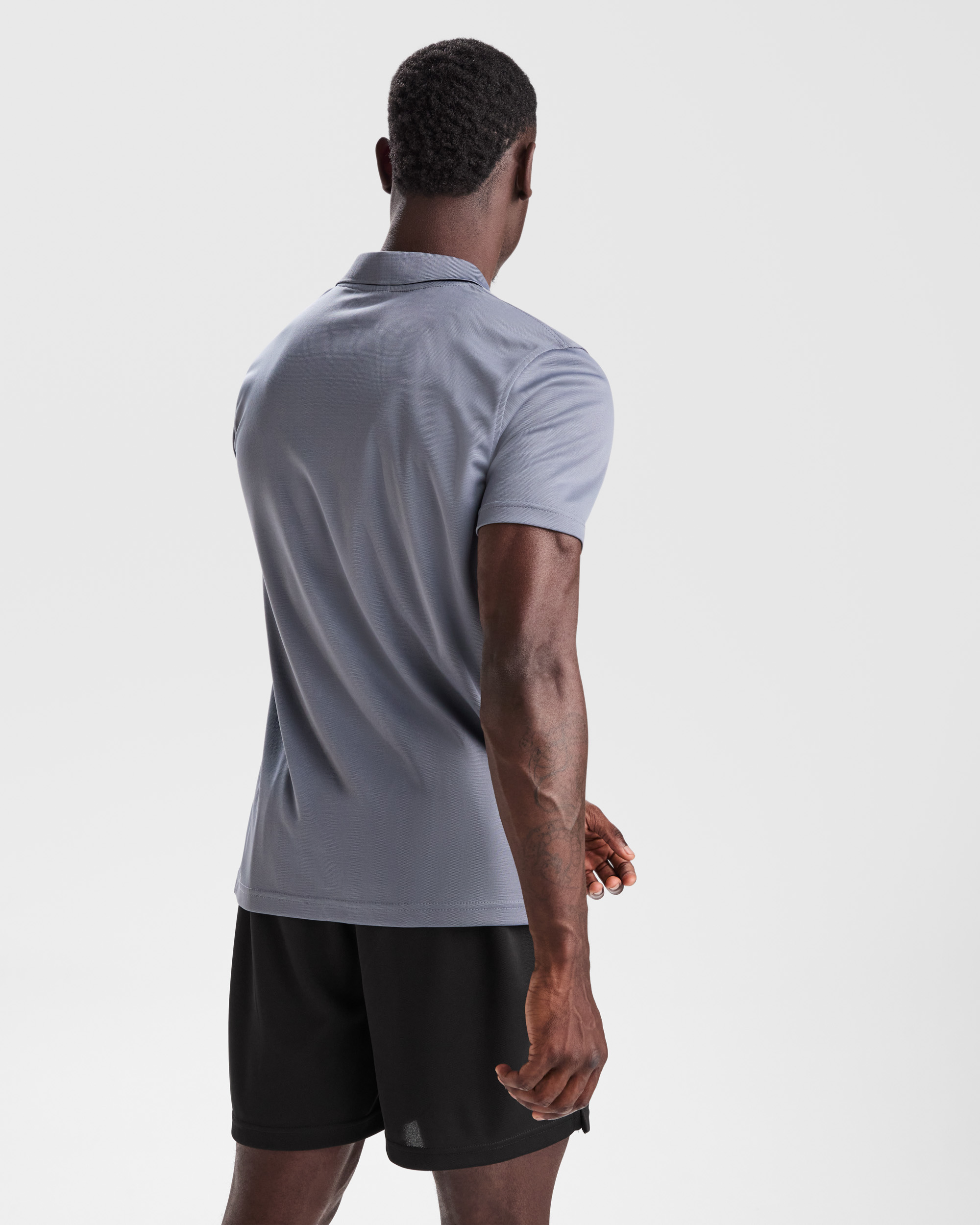 Polo técnico manga corta transpirable. Cuello rib 1×1 al tono. Tapeta con 3 botones. Cubrecosturas del mismo tejido al tono. Certificado UV.